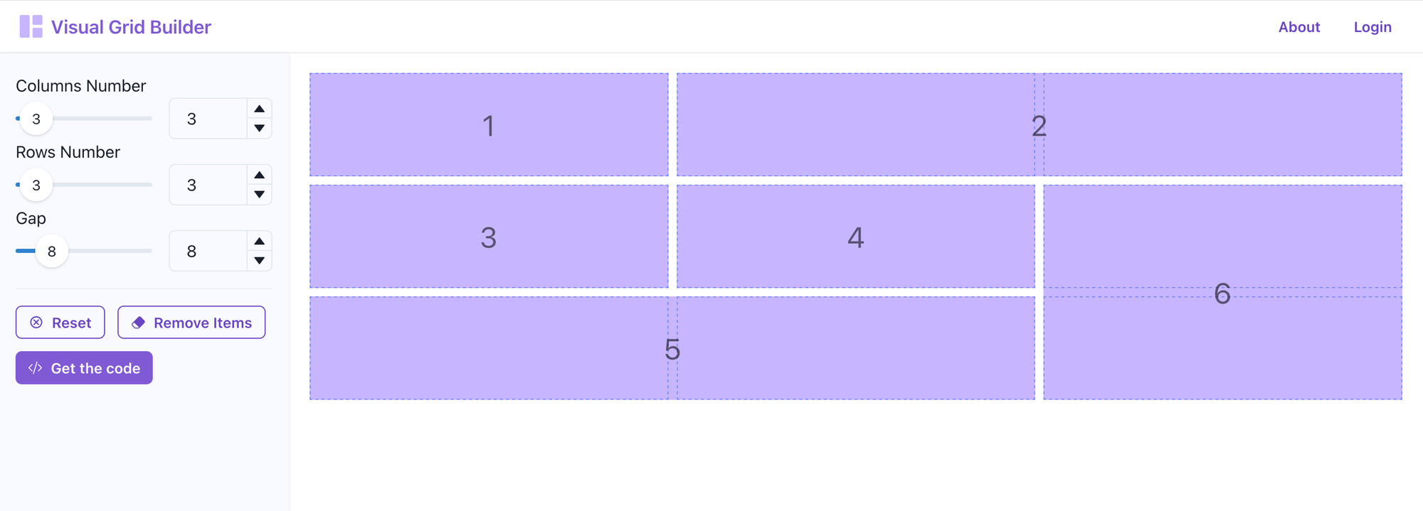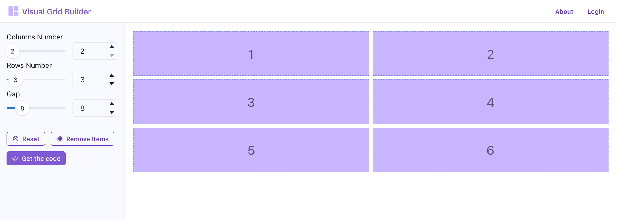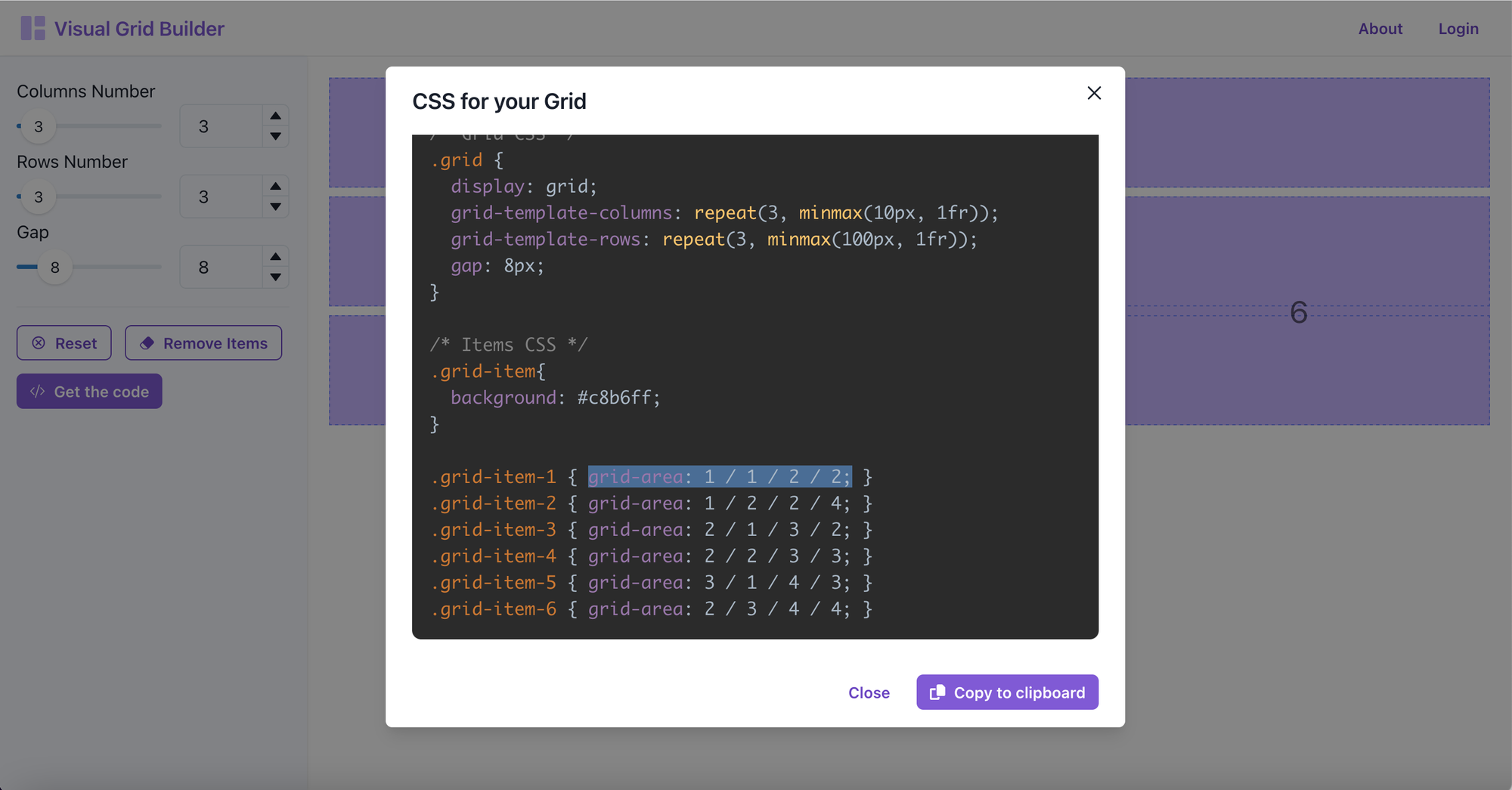 - Click the Get the code button to open the "CSS for your Grid" panel