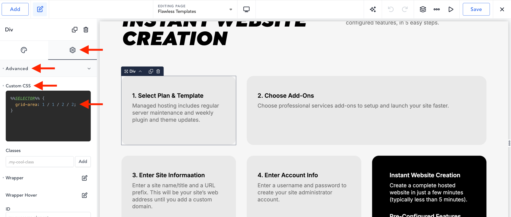 - Go to the Breakdance editor, click the first grid item... (Div)