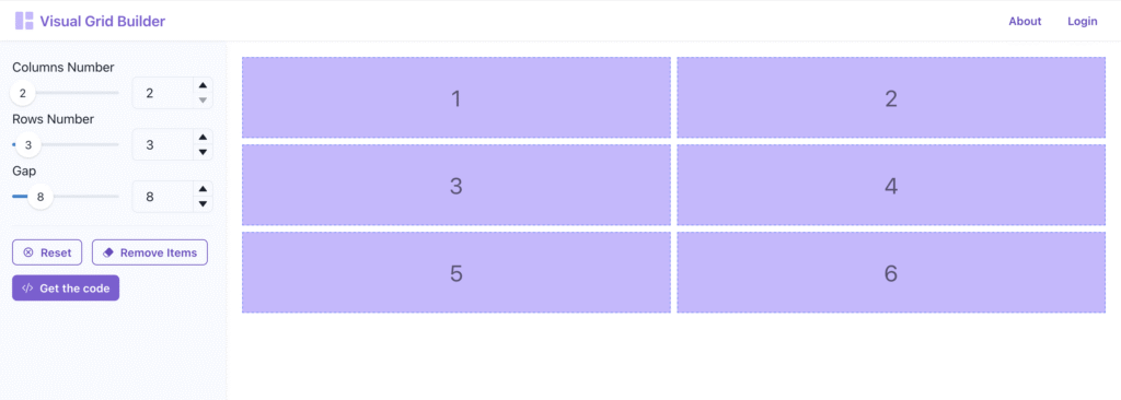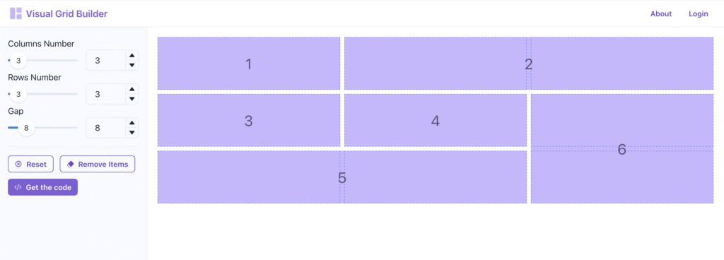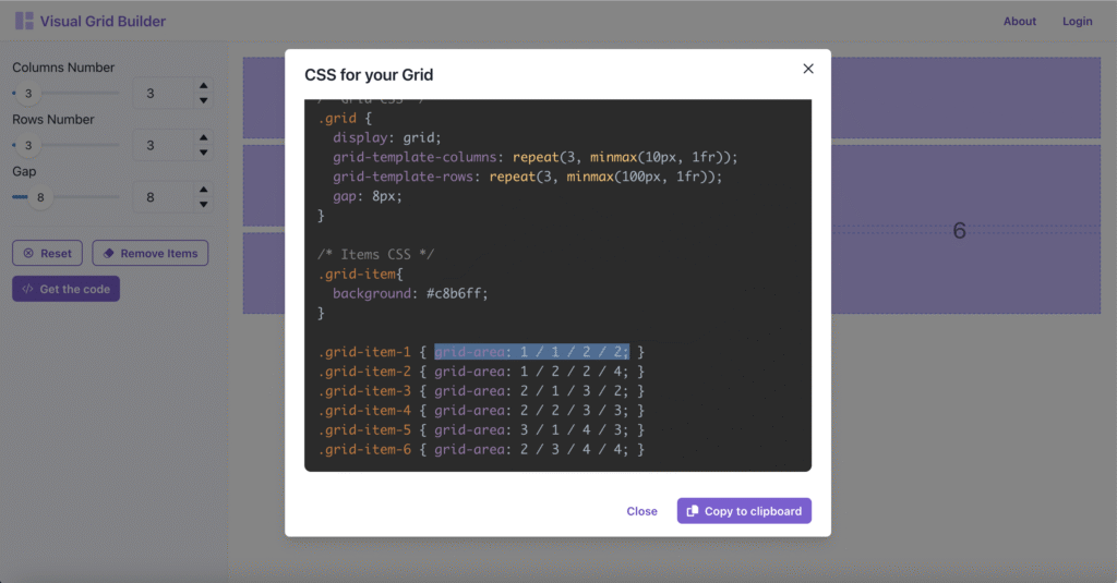 Click the Get the code button to open the “CSS for your Grid” panel
