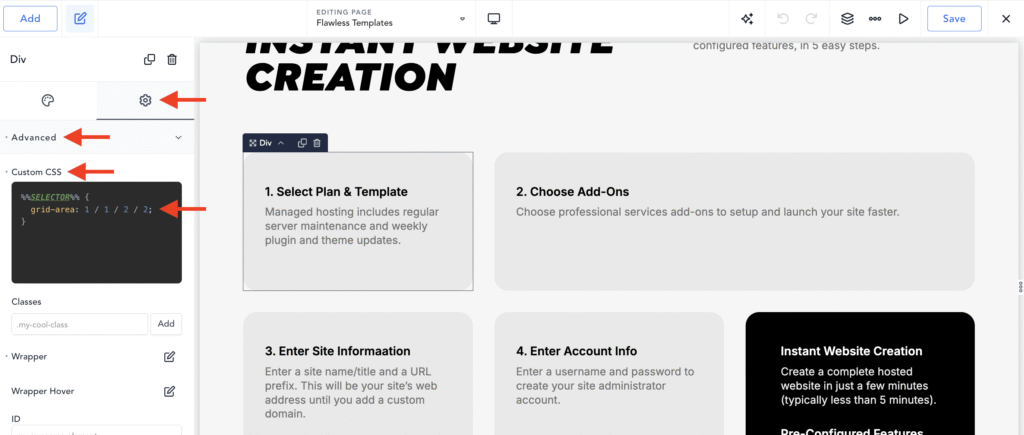 Go to the Breakdance editor, click the first grid item… (Div)